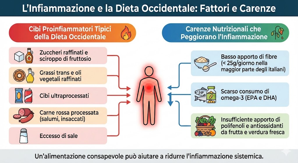 Ora che sappiamo che l’inflammaging è principalmente legato allo stile di vita industrializzato piuttosto che all’età in sé, vediamo quali sono i fattori specifici che lo alimentano. La buona notizia è che molti di questi fattori sono modificabili.